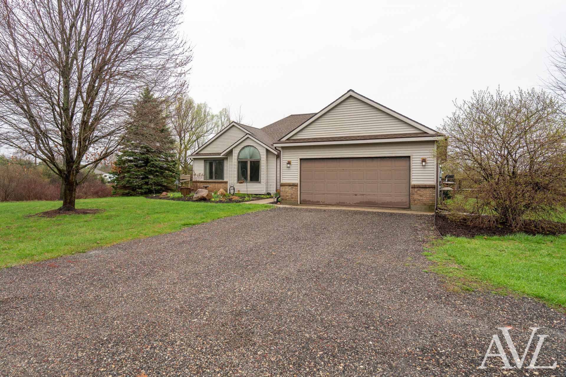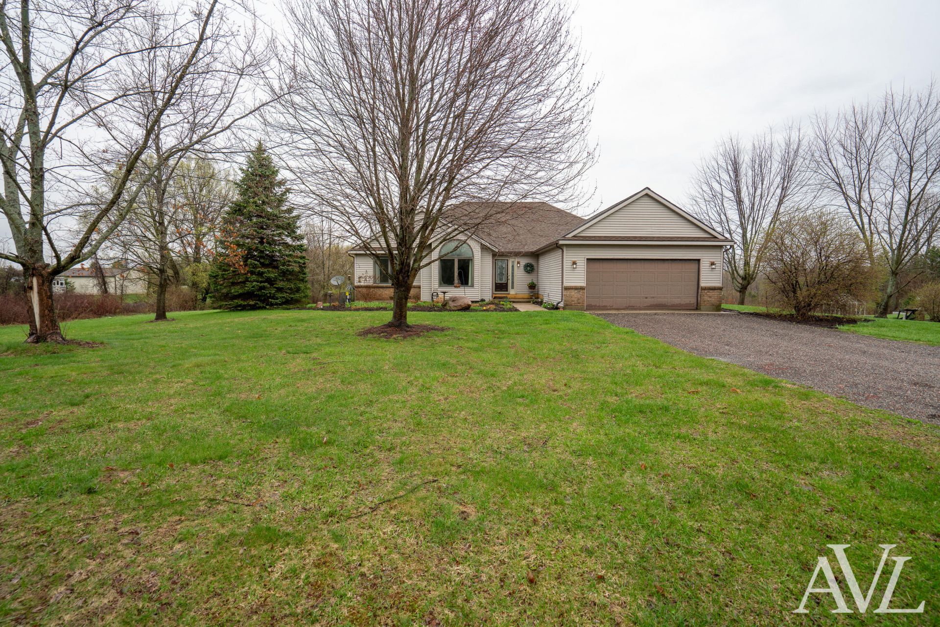 Tucked away on 3.3 wooded acres, this stunning 3-bedroom, 3.5-bath home offers a private setting that truly must be experienced in person--photos simply dont do it justice. Set well off the road and surrounded by mature trees, this property provides a peaceful retreat while still offering all the conveniences of modern living.Step inside to discover a bright, open floor plan filled with natural light--perfect for both everyday living and entertaining. The kitchen is the heart of the home, featuring a large center island with seating for six, subway tile backsplash, and stainless steel appliances. The adjoining living room offers a warm and inviting atmosphere with a gas fireplace.The main floor primary suite is generously sized and includes a walk-in closet and a private ensuite with a soaking tub. The main level also features an additional bedroom, a versatile office or great room, a beautifully updated full bathroom, and a convenient laundry room.The finished walkout lower level expands your living space with a spacious second living area and a private third bedroom with its own ensuite, complete with a tile walk-in shower--ideal for guests or multi-generational living.Outside, enjoy the serene backyard views from your large deck, overlooking the wooded landscape. A standout feature of this property is the impressive 35 x 60 pole barn, offering ample space for an RV, boat, snowmobiles, or additional storage.Notable updates include furnace (2018), added fireplace (2018), bladder tank (2022), well pump (2024), air conditioning (2025), roofs on both the home and barn (2025), and whole house water filter (2026). A full inspection report is available for buyers convenience.Any offers received will be reviewed at noon on Monday, 4/20/26.