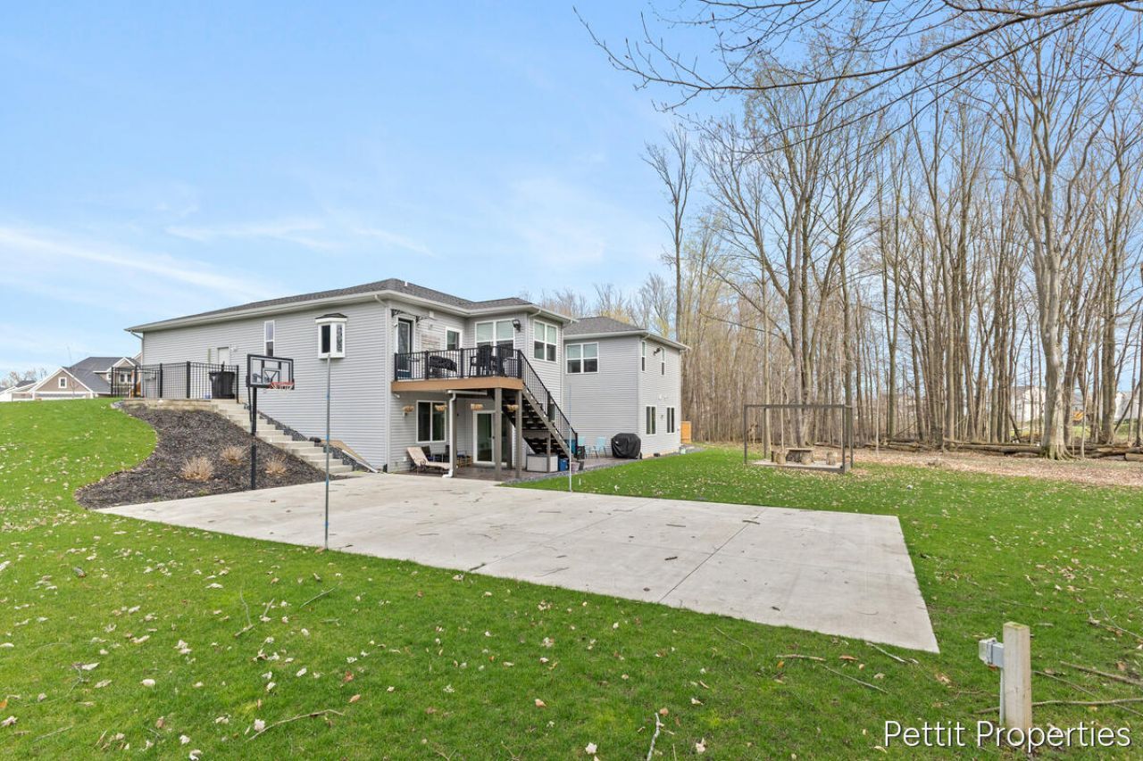 Welcome to 1835 Gloryfield Drive SW in Byron Center! Custom built in 2021, this contemporary ranch-style home now offers major improvements completed after construction, including a finished walkout lower level, private basketball and pickleball court, extensive professional landscaping, a pet spa in the 2.5-stall garage, and more. With potential for up to 6 bedrooms, this home offers flexible living options.The main floor features an open layout, spacious kitchen, oversized walk-in pantry, office/flex room, and laundry room. The recently finished lower level includes a wet bar, media room, gym/flex space, full bath, bedroom, and a utility/storage space. The gym and office could easily become additional bedrooms.Outside, enjoy a fenced dog run, invisible fence, front gathering patio, and large backyard patio. Just a short walk to Whistlestop Parks baseball fields, schools, shopping, and more!