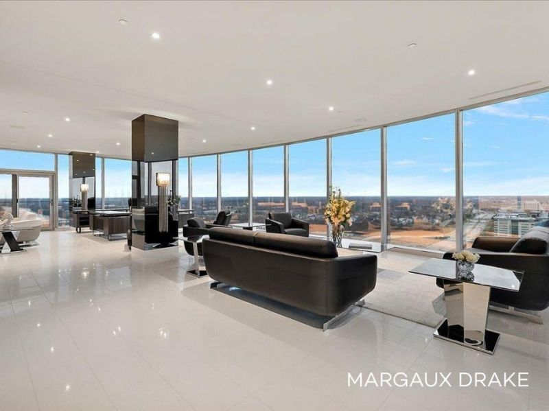 Above the city on the 32nd floor of The River House, one of Michigans tallest residential buildings, this one-of-a-kind penthouse--known as Thirty Two Hundred--redefines luxury living in Grand Rapids.Spanning approximately 4,800 sq ft, this ultra-luxury residence is the result of seamlessly combining two premier east-facing corner units into a singular, expansive home. Eastern, northern, and southern exposures are wrapped in floor-to-ceiling glass with reflective glazing, delivering uninterrupted views of the Grand River, the Calder, museums, parks, and the downtown skyline while filling the space with natural light throughout the day.The residences intentional oxblood accents subtly echo the iconic Calder sculpture, the focal point of the breathtaking view--an elevated, architectural nod that ties the interior palette to the defining icon of Grand Rapids. The main living area stretches across the full width of the residence, offering a scale rarely found in condominium living. Designed for upscale everyday comfort and elevated entertaining, the homefeatures four bedrooms and three-and-a-half bathrooms, including two private primary suites.At the center of the home, the chefs kitchen is both functional and sculptural, equipped with a full suite of Thermador appliances, custom cabinetry, and expansive quartz waterfall countertops. The adjacent dining, living, office, and family spaces, anchored by a sleek modern fireplace, flow effortlessly to two private balconies, where the river, city, and sky unfold.The primary suite is a study in texture and detail, wrapped in handcrafted grasscloth, accented by mirrored columns, and anchored by a sleek linear fireplace. The spa-inspired primary bath features Italian Iris leather tile, a Grohe thermostatic shower system, and hammered copper sinks--blending material richness with modern performance. Two fully built-out walk-in closets and a dedicated laundry room complete the suite.Throughout the residence, every finish and detail has been intentionally curated, creating a home that feels both refined and highly personal. A comprehensive Design Details & Finishes Portfolio is available for review, showcasing the globally sourced, artisan-crafted materials and fixtures--from Danish lighting to custom hardware and Adorne by Legrand electrical switching/outlets--where every detail has been treated as art.Additional features include two deeded parking spaces and two private storage rooms. Residents of River House enjoy 24-hour concierge service, security, a fitness center, indoor pool and spa, and a variety of community amenities and social events.Enjoy front-row views of fireworks, live concerts at the amphitheater, soccer matches at the stadium, and the evolving downtown skyline--all from your private balconies. All just steps from Grand Rapids top dining, cultural venues, and entertainment.At this level of scale, finish, and positioning, a residence of this caliber could not be recreated in todays market at this price point. This is a rare opportunity to own a truly irreplaceable residence--one that delivers scale, privacy, and design at a level seldom available in the Grand Rapids market.