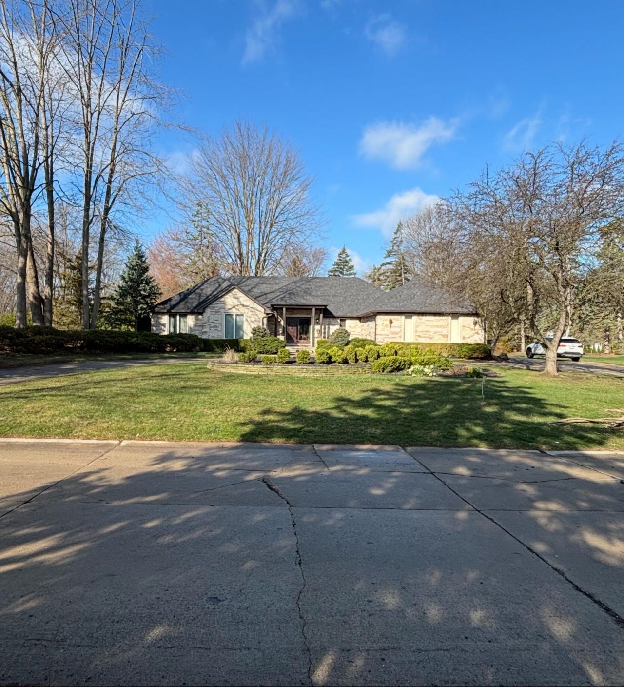 This beautiful sprawling ranch in the desirable Village Di Fiore subdivision features 3- bedrooms, 5 bathrooms. Situated on a spacious corner lot with a circular driveway and side-entry garage, blends elegance with function. Enter through the double doors into a bright foyer featuring cathedral ceilings, refined crown molding and vinyl plank floors throughout. Entertain in style with a step-down spacious living and dining room, warmed by a double-sided gas fireplace shared with the cozy, step-down family room. Retreat to the oversized bedrooms, especially the primary suite, which offers a serene escape with its double-door entry, separate shower, and whirlpool tub. The expansive, partially finished basement with a wet bar is a blank canvas for your dream entertainment area, complemented by an extra full bath.