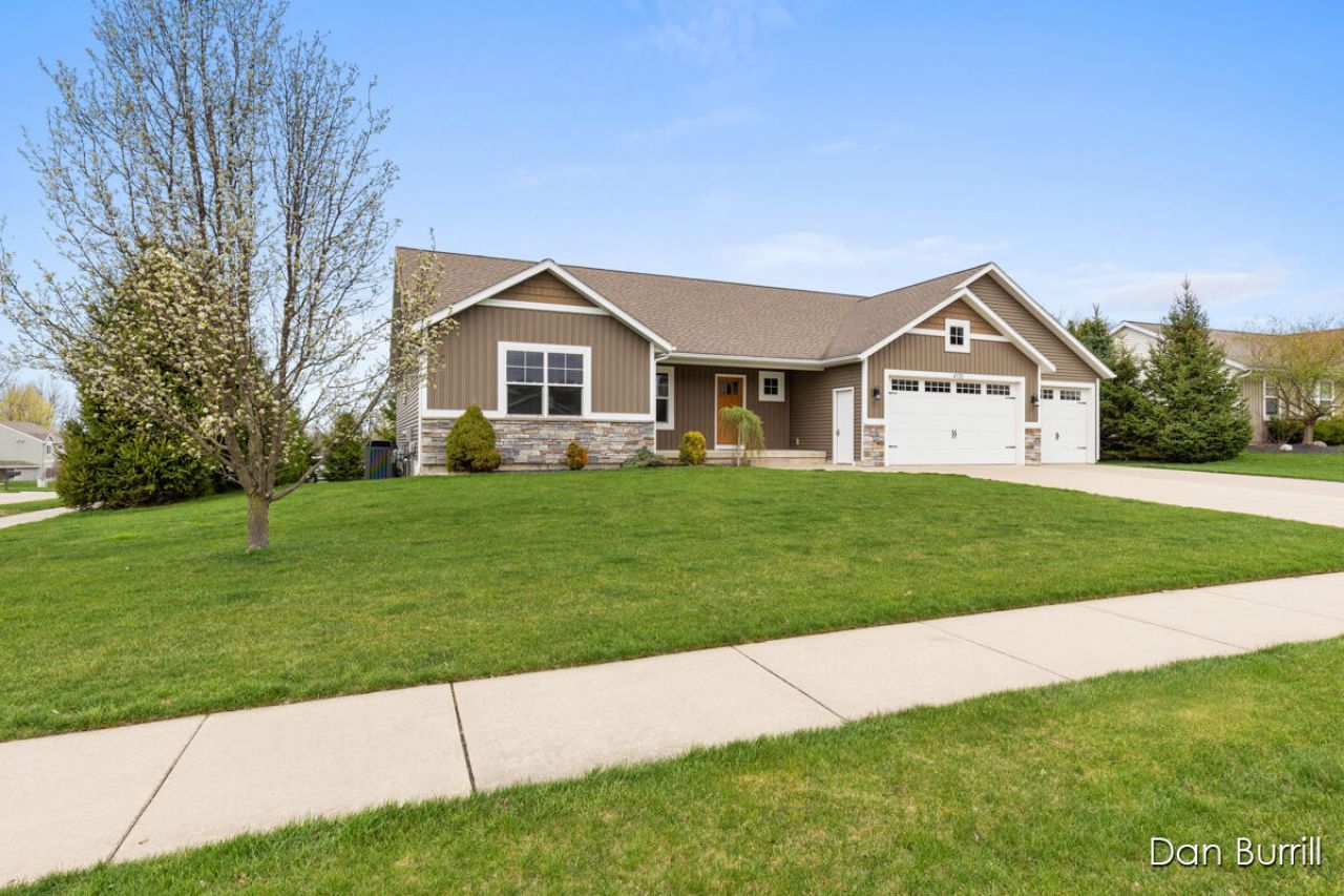 Dont miss out on this well built 5 bedroom home located in the Grandville School District, close to schools, shopping and easy highway access. Features include 1,670 sq. ft. on the main floor, entry with built in lockers, 1/2 bath, kitchen with solid surface counters, walk in pantry, dining area with slider to deck with steps to rear yard, open living room, primary bedroom with private bath & 2 additional bedrooms. Lower level includes 2 additional bedrooms, flex room, full bath, large family room with wet bar, & storage. Heated 3 stall garage, underground sprinkling and more. Stove, Refrigerator, washer & dryer remain with home. Seller has delayed review of offers until 10 am on 4/22/26.
