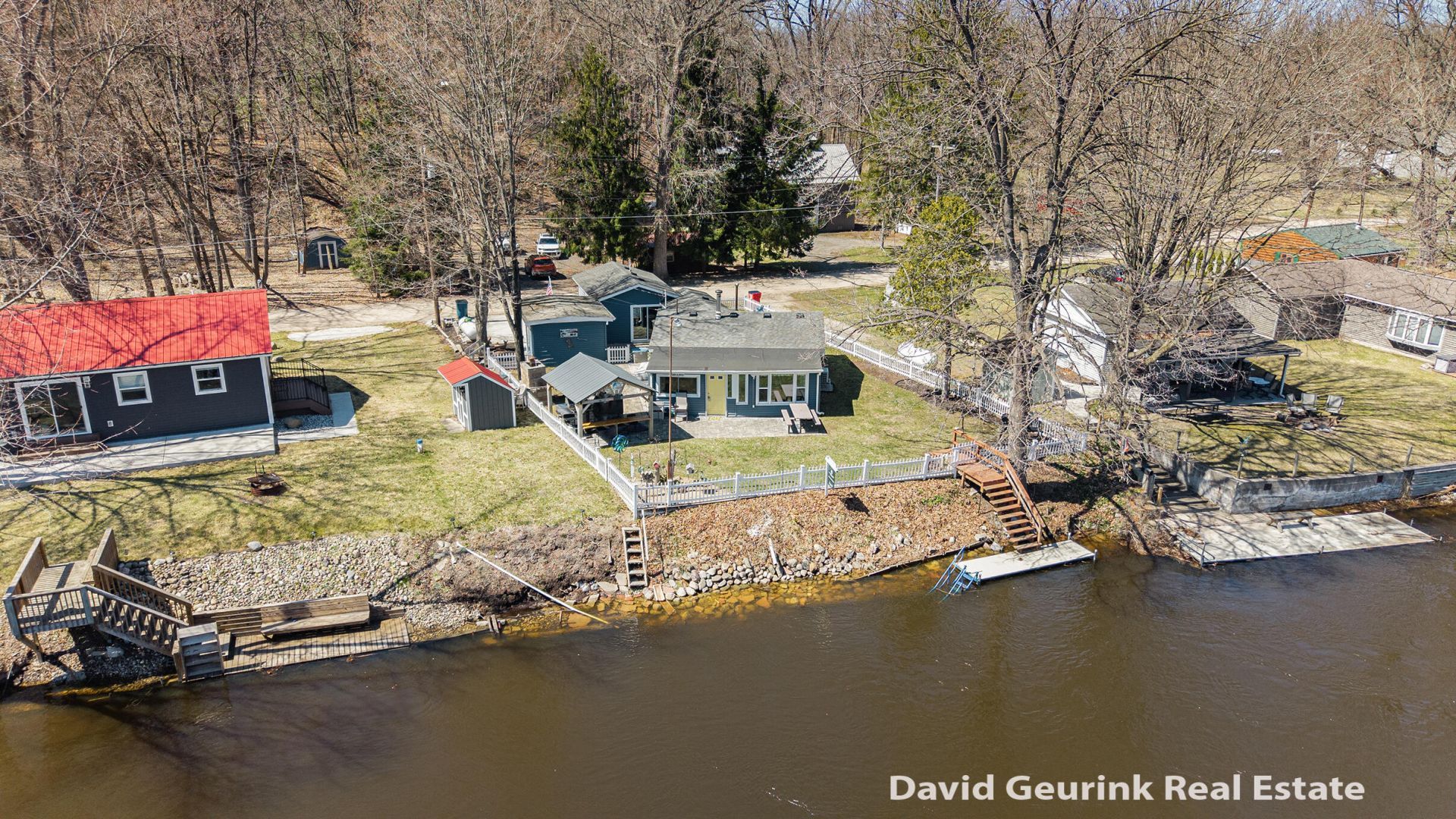 Welcome to your perfect Muskegon River retreat--where comfort, character, and outdoor living come together in an unforgettable setting. This recently updated 3-bedroom, 2 full bath home is nestled along the riverfront, offering both tranquility and adventure right outside your door.Inside, youll find warm knotty pine finishes that create a cozy, up-north feel, complemented by a spacious kitchen, formal dining room, and additional dining area--perfect for gathering with family and friends. The gas fireplace adds a touch of comfort for cooler evenings, while modern updates like mini-split systems (installed since 2018) ensure year-round efficiency and comfort.Step outside and experience what truly makes this property special. The custom outdoor fireplace, covered grilling area, and built-in bar create the ultimate entertaining space--ideal for relaxing after a day on the water. With private docks included, you can spend your days floating the river on a tube, casting a line in some of the areas best fishing waters, or even snorkeling in the clear currents.The property also includes an additional lot across the street featuring two storage sheds and plenty of parking space--perfect for accommodating guests, trailers, or recreational vehicles while keeping all your outdoor gear, tools, and toys organized. The extra parcel has been approved with the State of Michigan (EGLE) for a potential barn build, subject to township approvals and permitting, offering exciting possibilities for future expansion.Major updates such as a newer roof (2017), updated gas lines, and installed gutter guards add peace of mind and value.All of this, just a short drive from shopping and conveniences in Newaygo--close enough for ease, yet far enough to feel like a true escape.This is more than a home--its a lifestyle on the river.David Geurink & Agents shall not be held liable for any inaccuracies, misrepresentations, or omissions regarding the property, and makes no warranties or representations, express or implied, regarding the condition, value, or suitability of the property for any particular purpose. Buyer to verify all information.