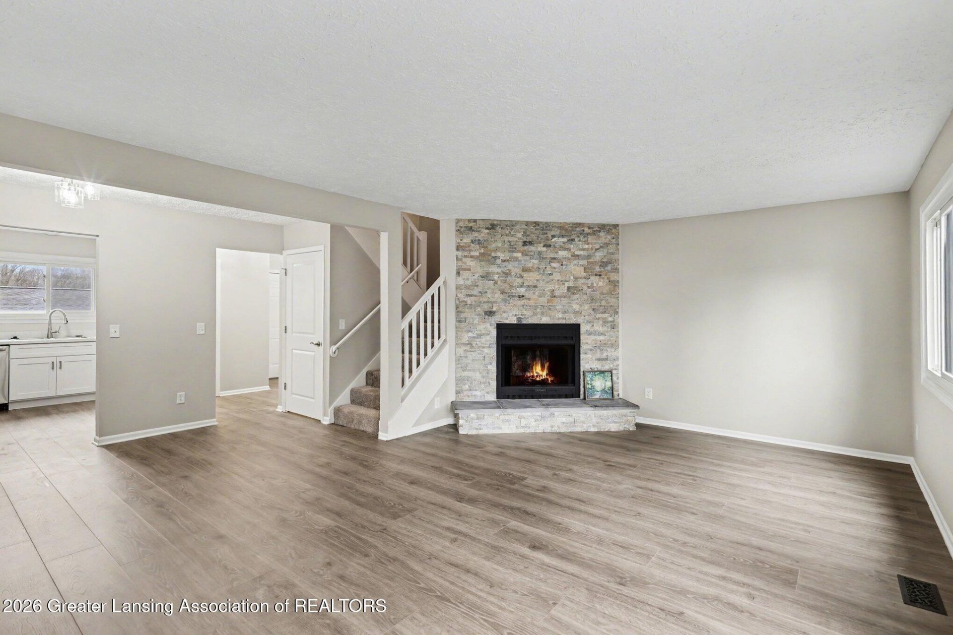 Welcome to your new home in the heart of Grand Ledge! This beautifully updated condominium offers 3 spacious bedrooms, 1.5-bathrooms, just minutes from downtown, shopping, and schools. This move-in-ready home features a fully updated kitchen with new cabinets and appliances, along with new flooring and paint throughout the home. Both bathrooms have been refreshed with new cabinetry and flooring, offering a clean, modern feel. The fireplace has been tastefully updated with new stone, creating a stylish focal point in the living space. A perfect blend of style, comfort, and location?ready for its next owner to enjoy.